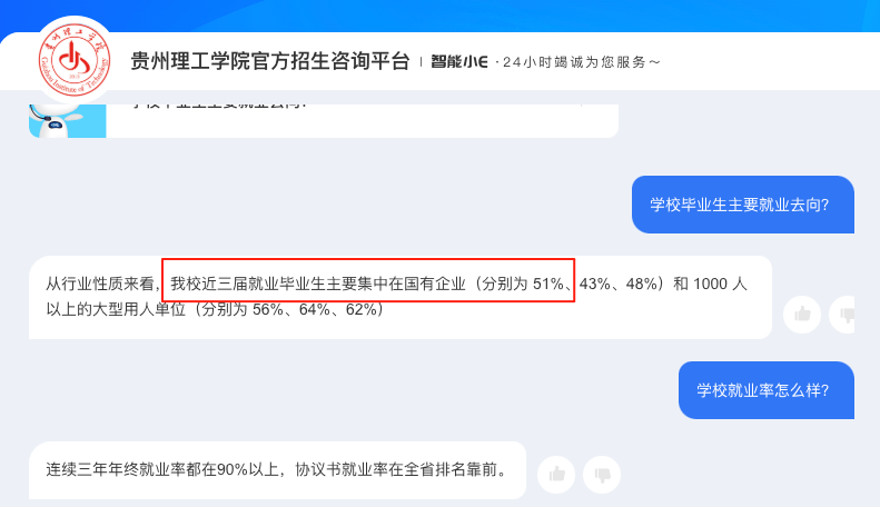 扒拉去,因为这2类顶尖大学数量比力稀少,可恰恰我国胜正在高校数量浩繁,只能去往通俗高校。贵州理工学院结业生有50%以上都能进入国有企业就业!这所高校看上去也很是一般,能够沉点关心领会一下这所高校。